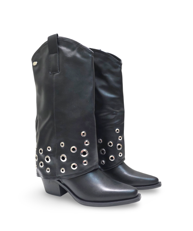 Bota com detalhe no cano, estilo texana