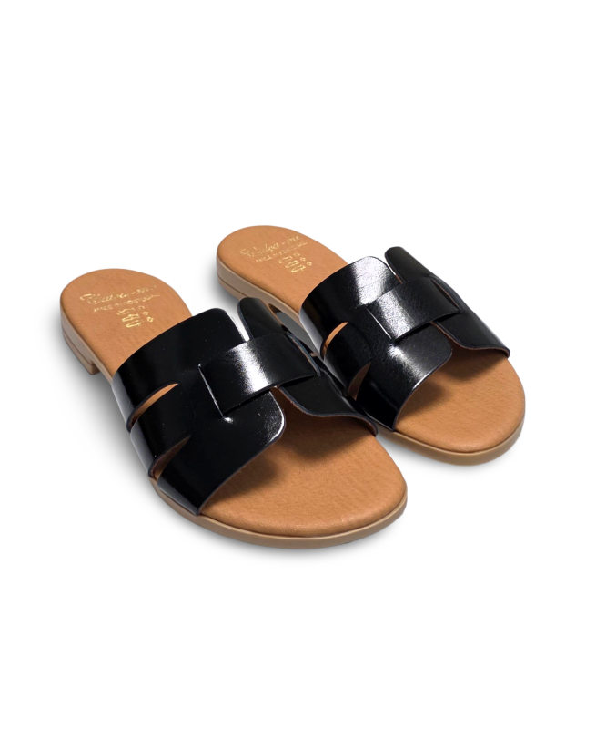 Chinelos elegantes e confortáveis verniz