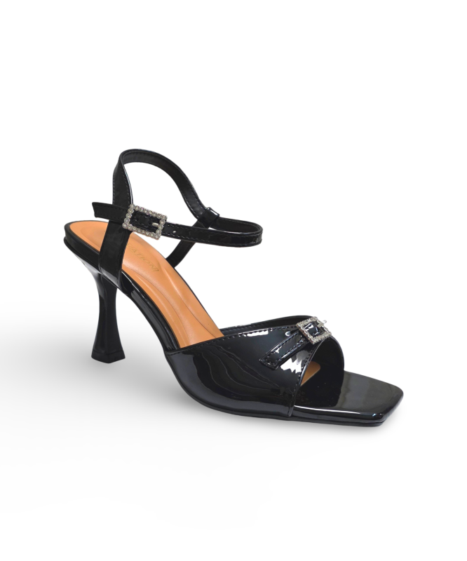 Sandalia Senhora classica tacão fino e fivela decorativa