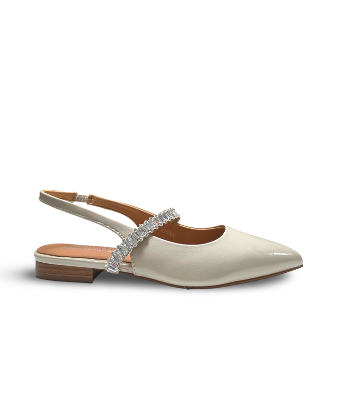 Sapato raso com brilhantes na fivela