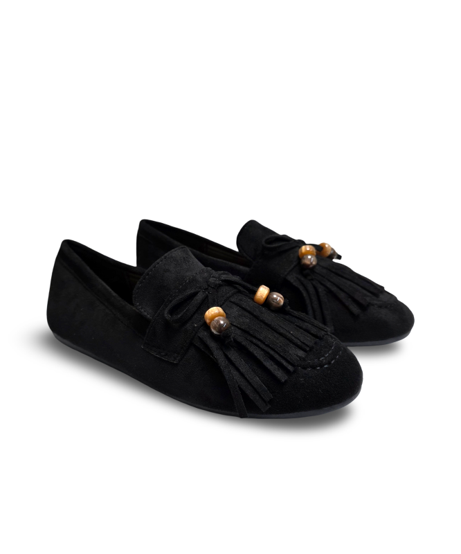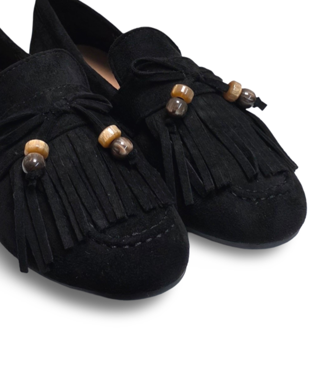 Sapato Raso com franjas de camurça