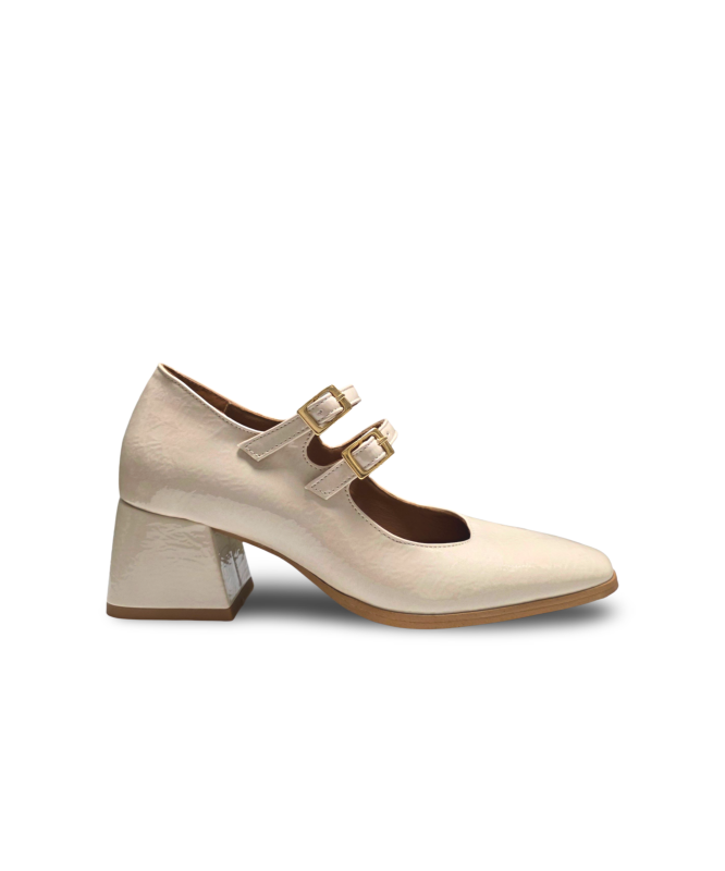 Sapato fivelas com tacão e biqueira quadrada