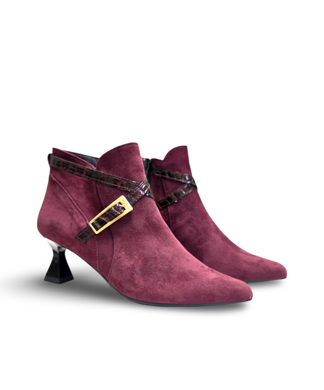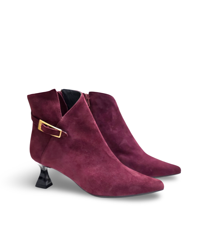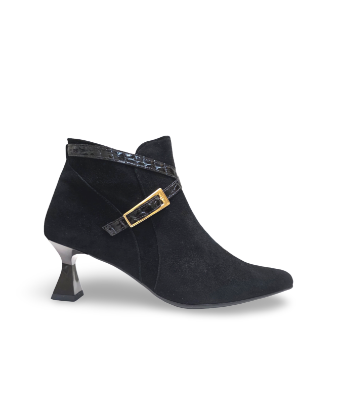 Botin Senhora camurça com fivela de tacão quadrado